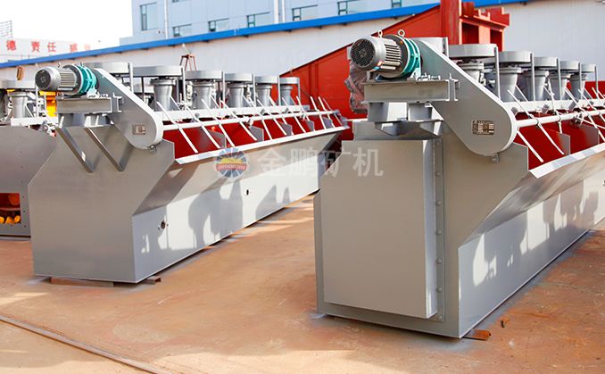 本工藝采用兩段一閉路破碎流程,合格產(chǎn)品進(jìn)入粉礦倉(cāng)緩存,礦石由擺式給礦機(jī)均勻的給到直筒節(jié)能格子型球磨機(jī)進(jìn)行磨礦,格子球磨機(jī)和高堰式單螺旋分級(jí)組成一段閉路磨礦分級(jí)流程。分級(jí)溢流經(jīng)過(guò)攪拌槽的調(diào)漿后進(jìn)入浮選系統(tǒng),通過(guò)做礦石的可選性實(shí)驗(yàn)研究我們選擇一粗兩精兩掃的浮選流程,能很大程度的回收脈石中的有價(jià)金元素。浮選金精礦通過(guò)濃密機(jī)進(jìn)行濃縮,濃密機(jī)的溢流水返回流程使用,底流自流至圓筒外濾式過(guò)濾機(jī)進(jìn)行脫水從而得到金精礦粉。
