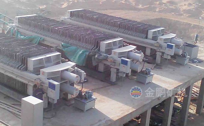 浸出槽最后的尾礦經(jīng)緩沖槽由泵輸送到全自動廂式壓濾機(jī),壓濾后的水流入循環(huán)水池以備循環(huán)利用,濾餅經(jīng)帶運(yùn)輸機(jī)運(yùn)到尾礦堆場,卡車將尾礦運(yùn)到尾礦庫。
