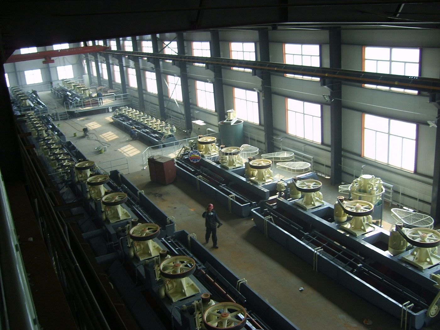 浮選分為三個(gè)系列,采用一次粗選,四次精選、三次掃選流程,選用XCF/KYF-16浮選機(jī)36臺(tái),GF-3浮選機(jī)21臺(tái)。