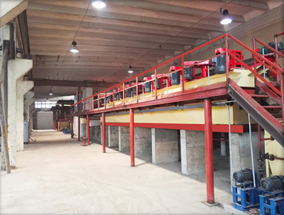 該項目為后續(xù)3000t/d工程的半工業(yè)試驗場地,白鎢采用重選和浮選兩種選別方法,螢石采用浮選回收。通過半工業(yè)試驗的成果確定3000t/d選廠的工藝流程。
