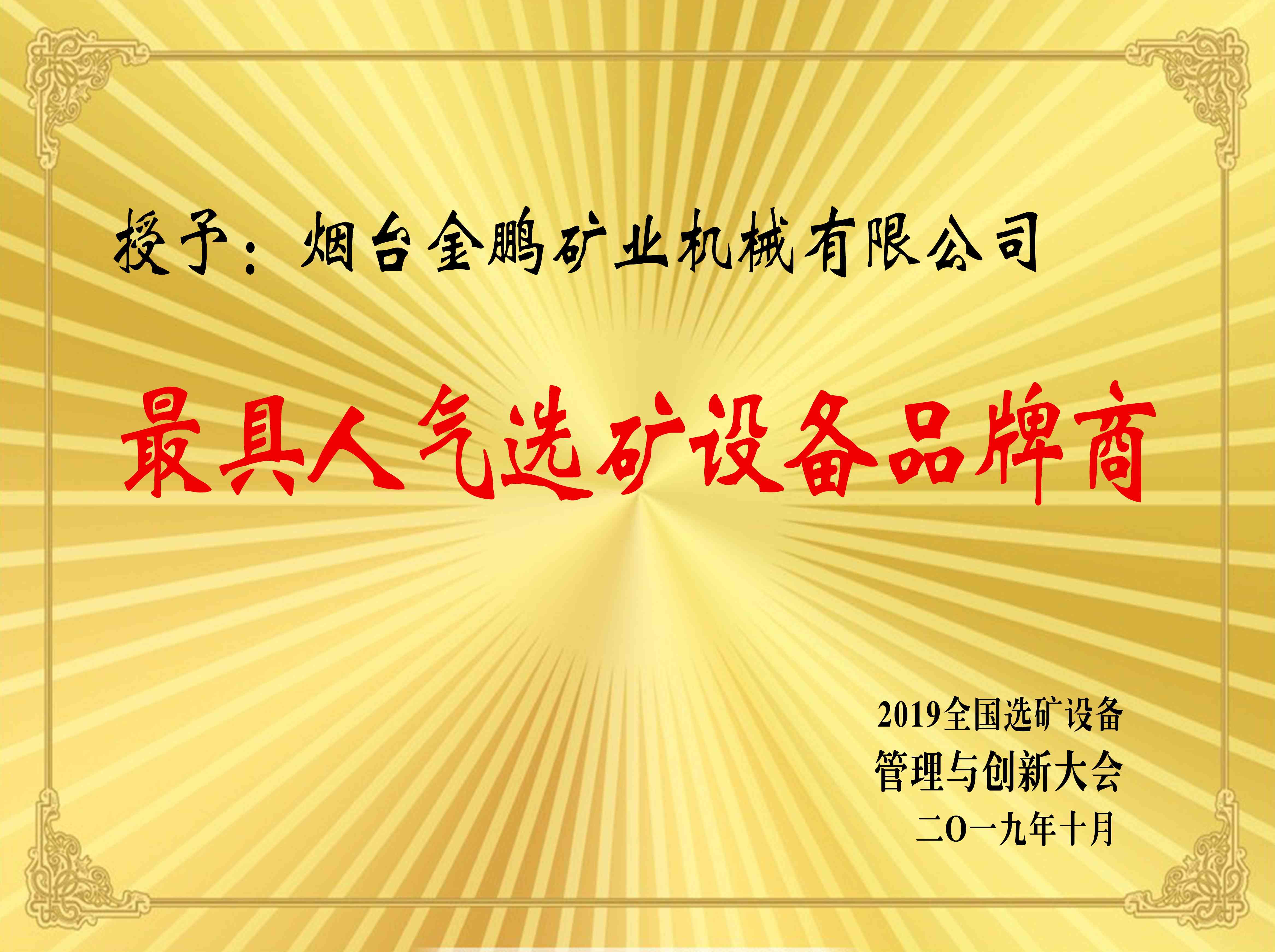 2009年度山東省和煙臺市消費者滿意單位光榮稱號;公司已具備了為10000t/d的礦山全包工程提供一條龍服務的能力; 開發研制高效濃密機,比普通濃密機提高處理能力6-8倍; 研發出自主知識產權的專利產品——數控智能取樣機和觸摸屏控制電腦加藥劑,真正實現數控智能取樣和自動定量加藥; 創立金鵬工業園,5300平方米廠房建設完成。
