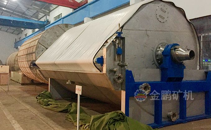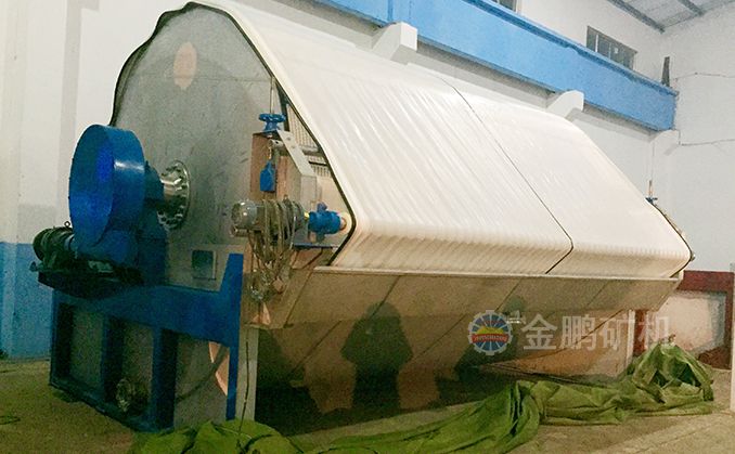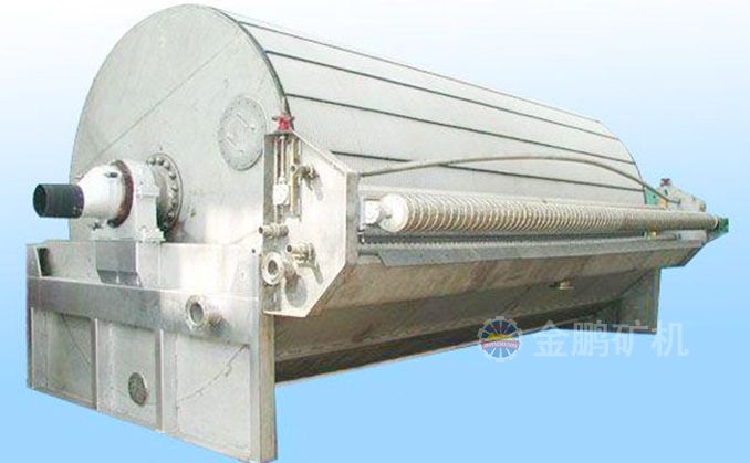 折帶式真空過濾機不采用鼓風機卸料,而是讓濾布繞過卸料輥,通過變化曲率使濾餅自動落下,也可以利用刮板等機構幫助卸料。這樣卸料不僅提高了過濾能力,而且不用鼓風,使濾餅不致因回水而增加水分。折帶式過濾機將濾布引到筒體以外,有足夠的時間采用有效的方法清洗濾布。一般用壓力水沖濾布的兩面,還可根據(jù)需要用刷子和打布器等裝置進行更徹底的清洗,以保證濾布的透氣性。
