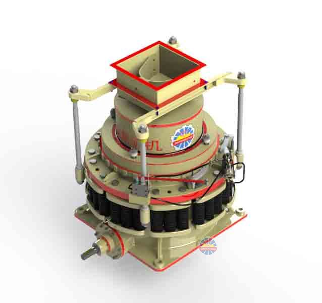 4.動錐和定錐都是正置,動錐擺動時,在破碎腔出料口附近,動錐與定錐之間有一段間隙相等的平行帶,使成品料度均勻,進料口尺寸不大,能夠處理的都是經(jīng)過初次破碎的物料;