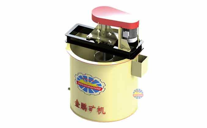 攪拌槽由主軸部件、架子、槽體部、循環(huán)桶、電動機、電動機座組成。葉輪的旋轉(zhuǎn)是由電動機通過皮帶輪、三角帶而得到葉輪的旋轉(zhuǎn)使礦漿和藥劑攪拌均勻。