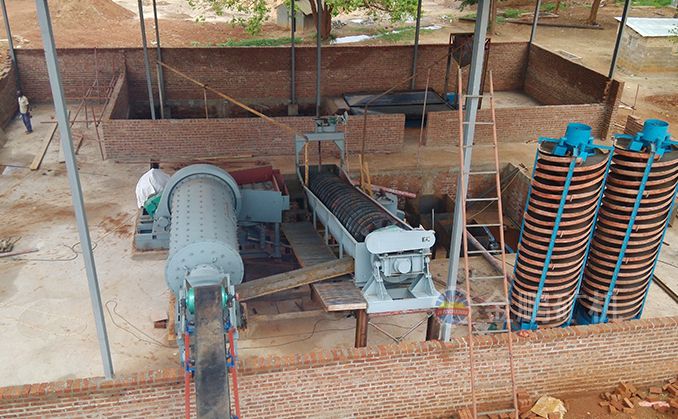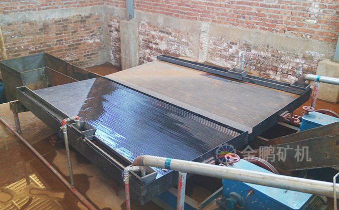 多年實(shí)踐證明:除鐵器+跳汰機(jī)+搖床+斜管濃密箱的組合系統(tǒng)重選回收率高,流程暢通、運(yùn)行可靠,跳汰機(jī)通常作為粗選設(shè)備安放于磨機(jī)分級(jí)設(shè)備之間,磨機(jī)排礦首先給至跳汰機(jī),其分選出的重礦物給至搖床再選,輕礦物自流至分級(jí)機(jī)。最終的重選毛金品位可達(dá)40-45%,可直接冶煉成高純度金錠。在這種配置中,跳汰機(jī)是典型的體現(xiàn)“能收早收”原則的重選設(shè)備,有利于提高重選和總回收率;離心機(jī)+搖床的配置也在某些選金廠得到應(yīng)用。