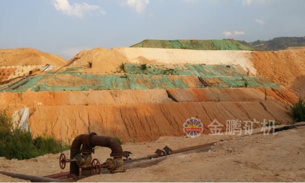 金礦堆浸就是將低品位的金礦石破碎至一定粒度(或造粒),堆積在由瀝青、混凝土或塑料布等材料鋪筑的防漏底墊上,用低濃度氰化物、堿性溶液、無(wú)毒溶劑或稀硫酸等溶液在礦堆上噴淋,使金溶解,含金的溶液從礦堆上滲濾出來(lái),然后用活性炭吸附或鋅粉置換沉淀等方法回收金。